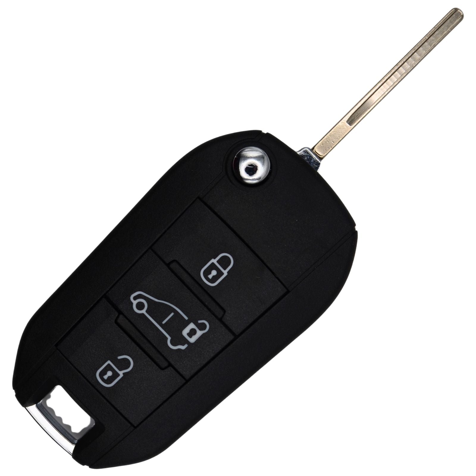 The item is an aftermarket replacement black three button remote key fob case and comes with a new flip out key blade.