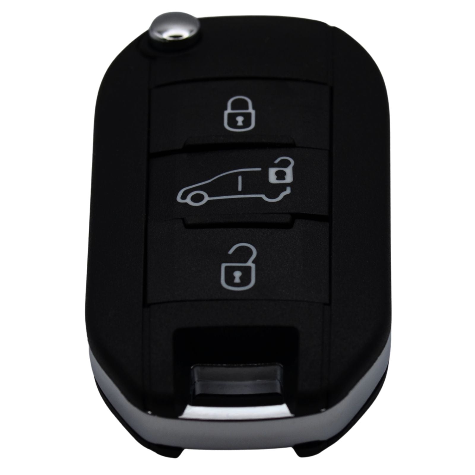The item is an aftermarket replacement black three button remote key fob case and comes with a new flip out key blade.